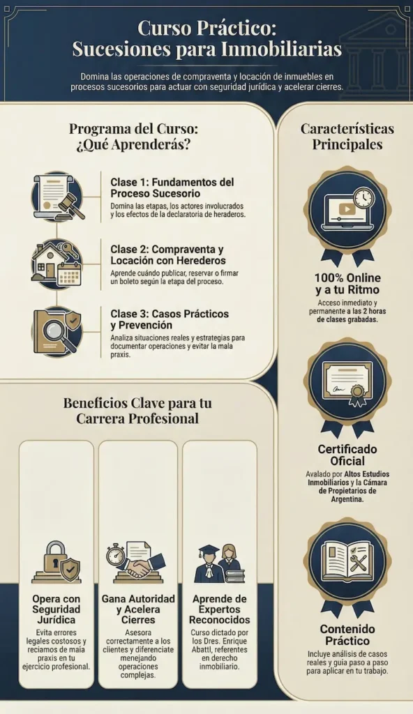 Evitá la mala praxis y operá con seguridad en compraventa y locación cuando hay herederos, declaratoria y procesos sucesorios en curso.